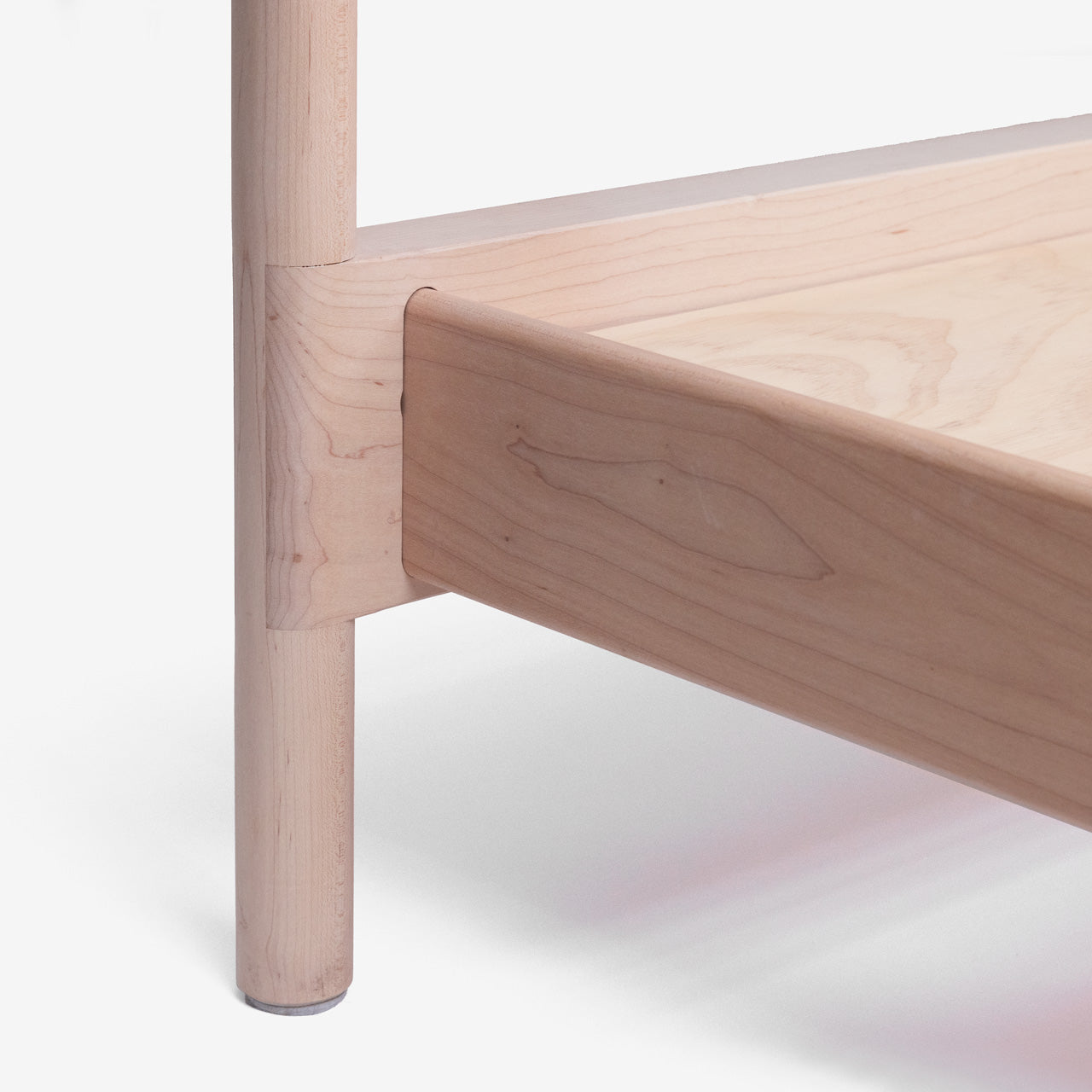 Materialidad: Madera de maple importada, terminación aceite-cera natural, somier en madera terciada garantizando una base sólida y resistente para tu colchón.