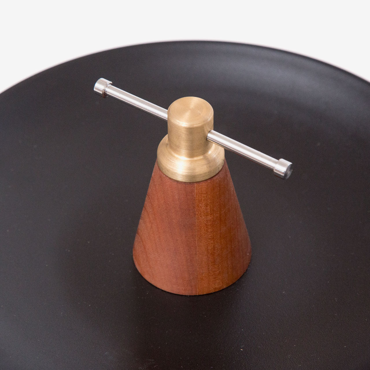 Materialidad: Bronce pulido, fierro electro esmaltado y madera de Raulí.